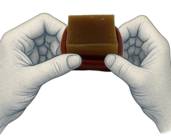 Roll down silicone casing, as per diagram. Roll up the casing after use, and replace lid to protect the rosin.